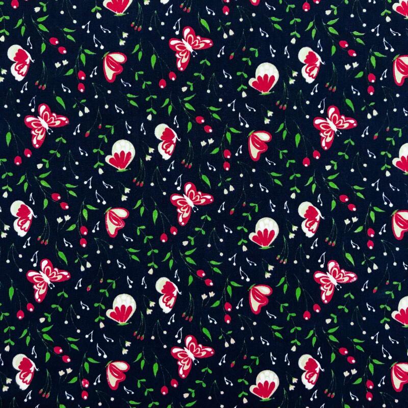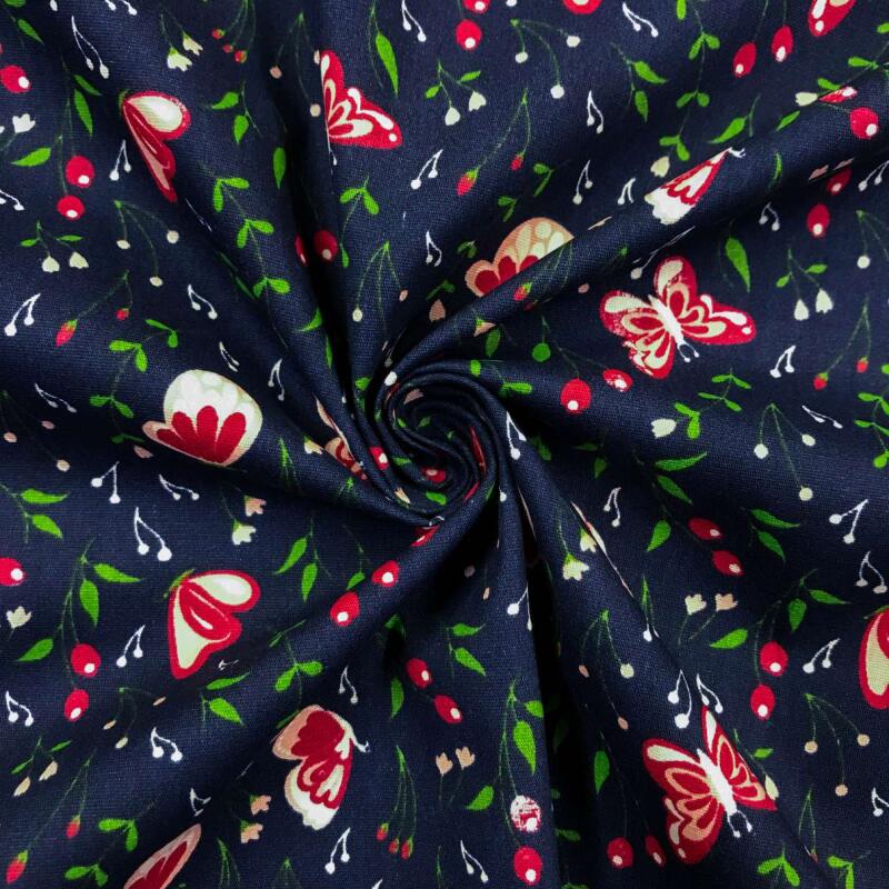 Tecido Tricoline Estampado - Borboletas E Ramos - 100% Algodão - 1,50M Largura - Variante 1