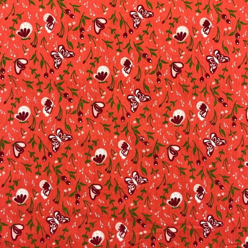 Tecido Tricoline Estampado - Borboletas E Ramos - 100% Algodão - 1,50M Largura - Variante 4