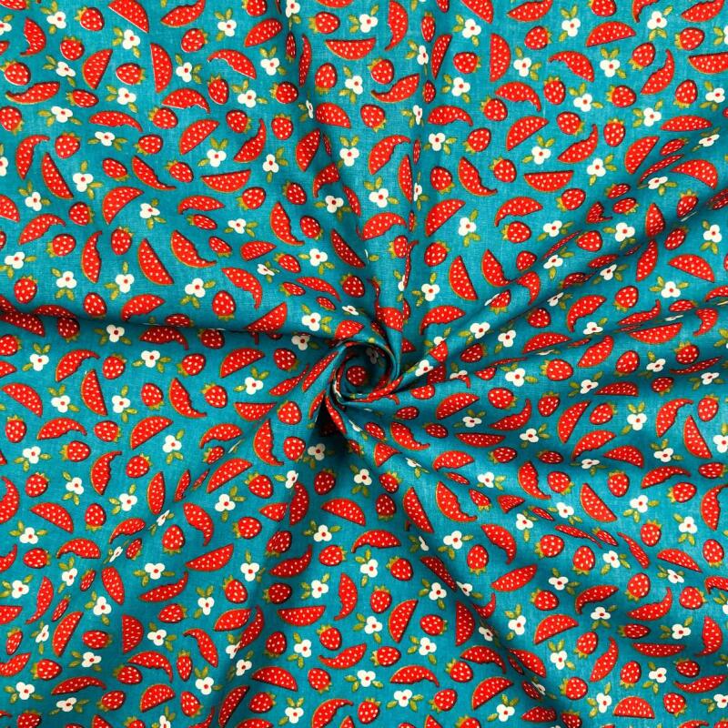 Tecido Tricoline Estampado - Melancia Com Moranguinhos - 100% Algodão - Variante 5