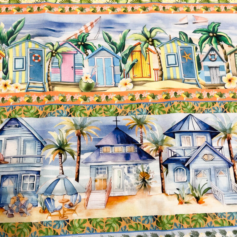 Tricoline Digital Barrado Aloha Tropical 100% Algodão - Variante 1