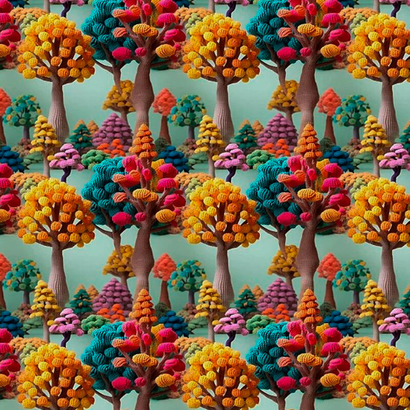Tricoline Digital Fabricart Árvores Croche 100% Algodão 1,50M Largura - Variante 1