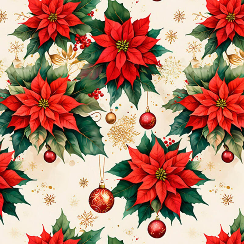 Tricoline Digital Fernando Maluhy Natal Flores Clássicas Fundo Creme 100% Algodão 1,50M Largura - C01
