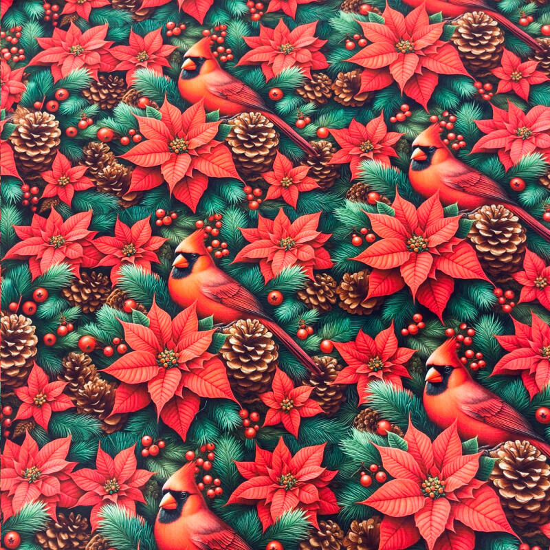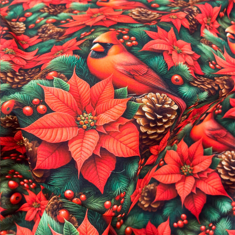 Tricoline Digital Fernando Maluhy Natal Pássaro Com Pinhas 100% Algodão - C01