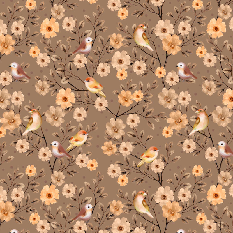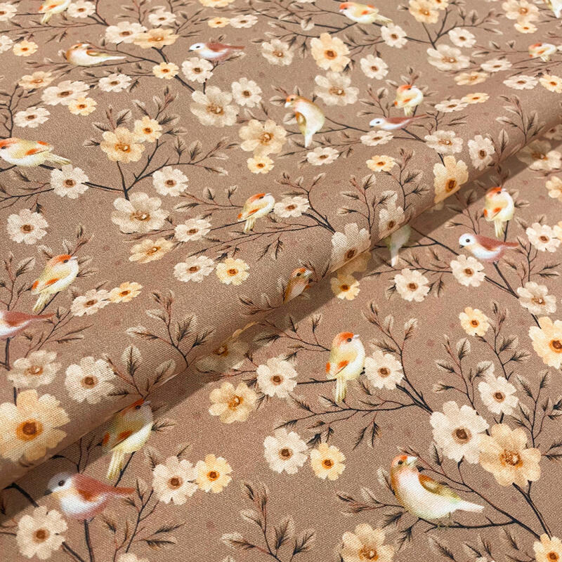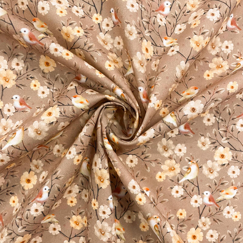Tricoline Digital Floral Com Pássaros 100% Algodão - Variante 1