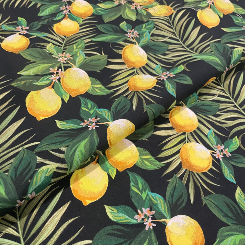 Tricoline Digital Limão Siciliano Fundo Preto 100% Algodão - Variante 1