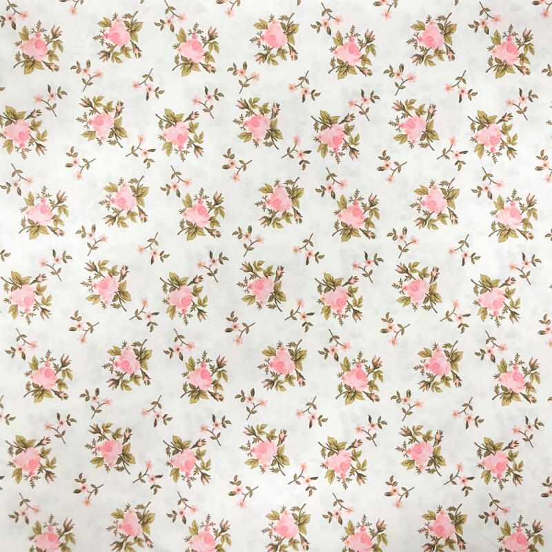 Tricoline Estampada Caldeira Raminhos Angel 100% Algodão 1,50M Largura - Fundo Creme