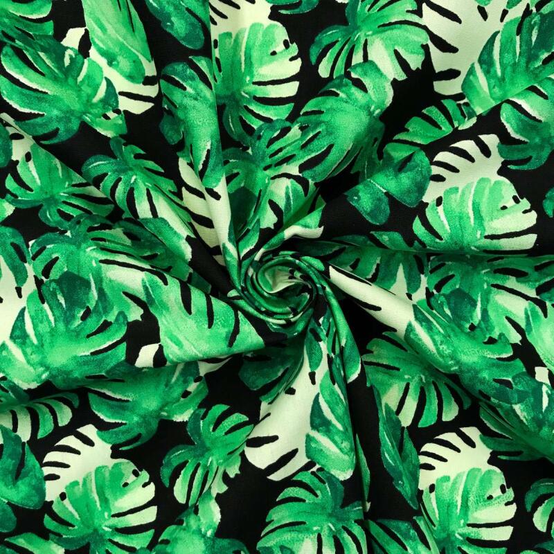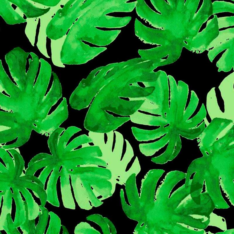 Tricoline Estampada - Folhagens Fundo Preto - 100% Algodão - 1,50M Largura - Variante 1
