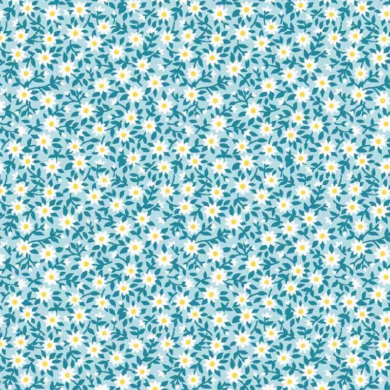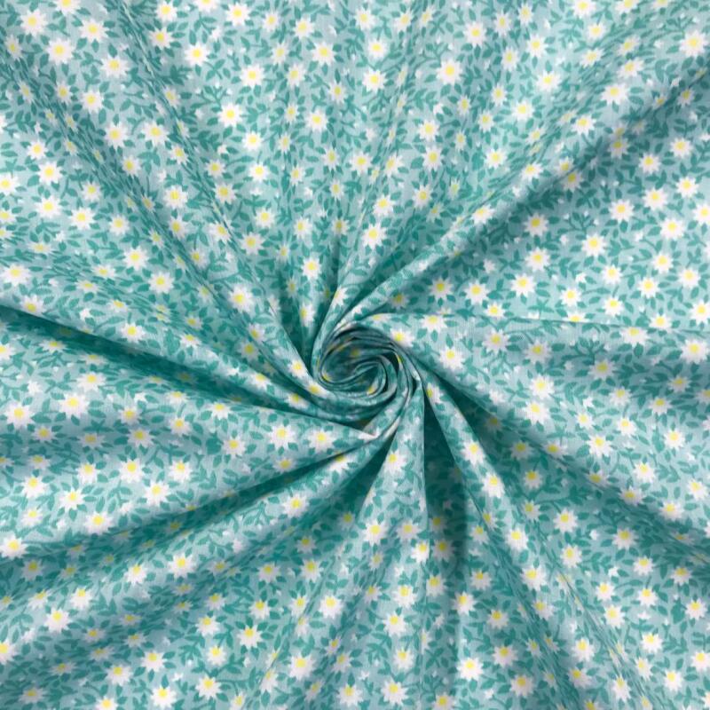 Tricoline Estampada - Ramos Verde Água - 100% Algodão - 1,50M Largura - Variante 1