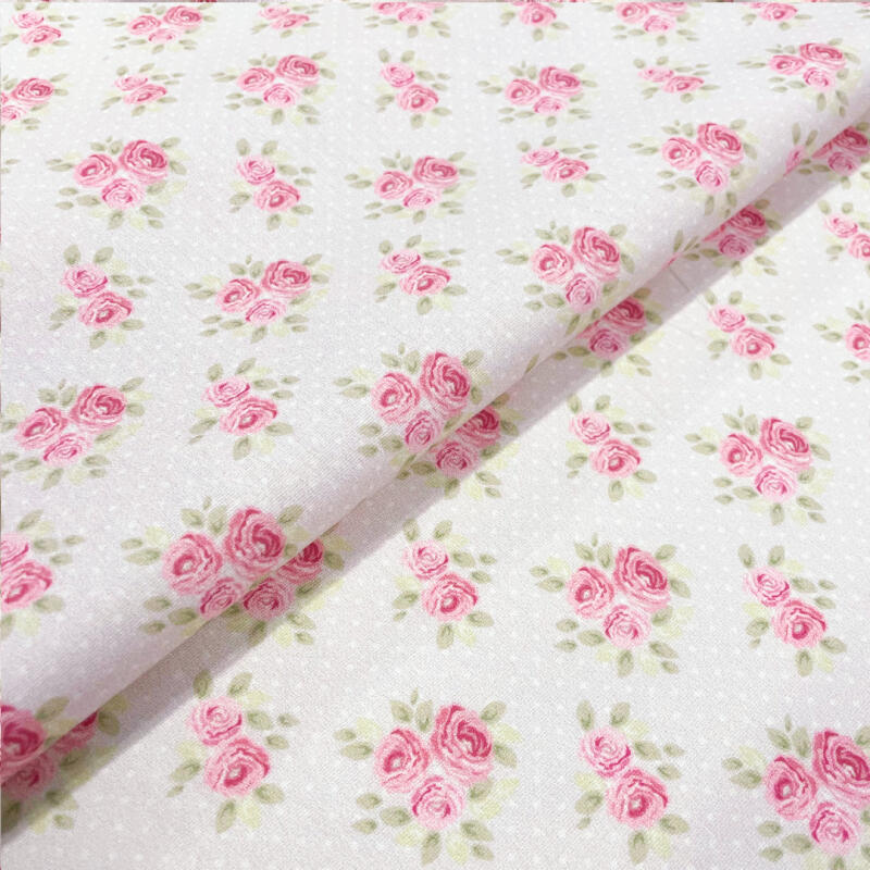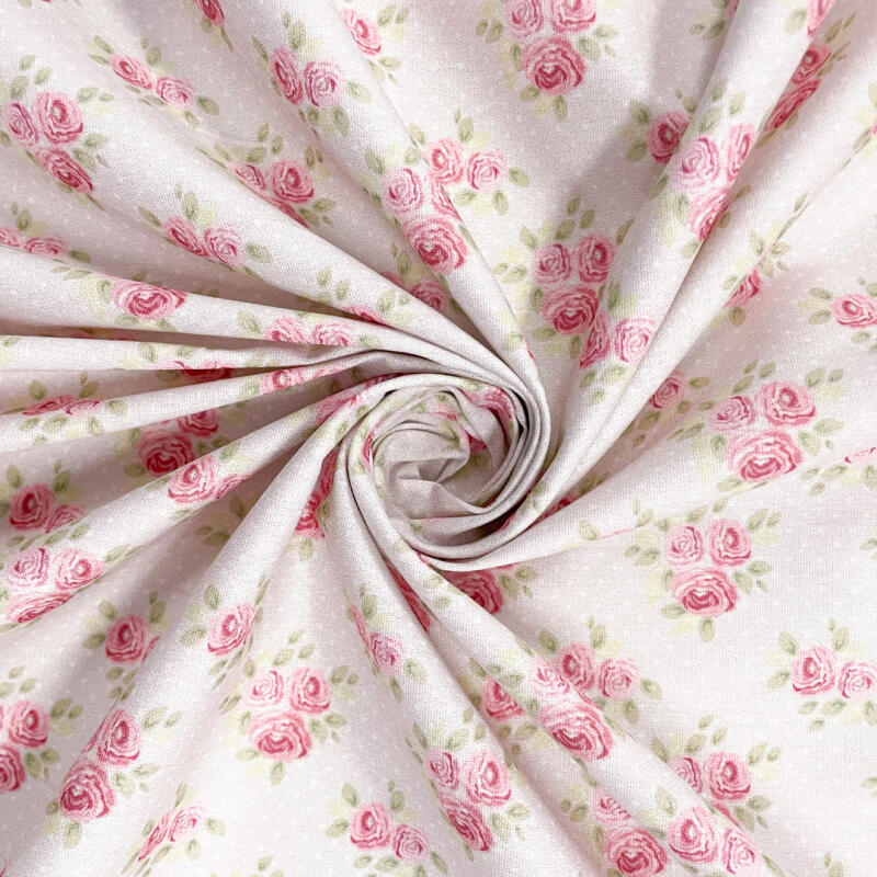 Tricoline Estampada Rosas Fundo Bege Com Poazinho 100% Algodão 1,50M Largura - Variante 1