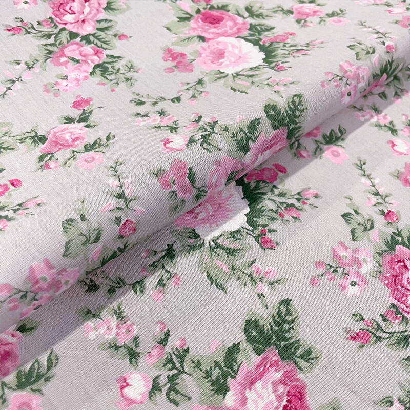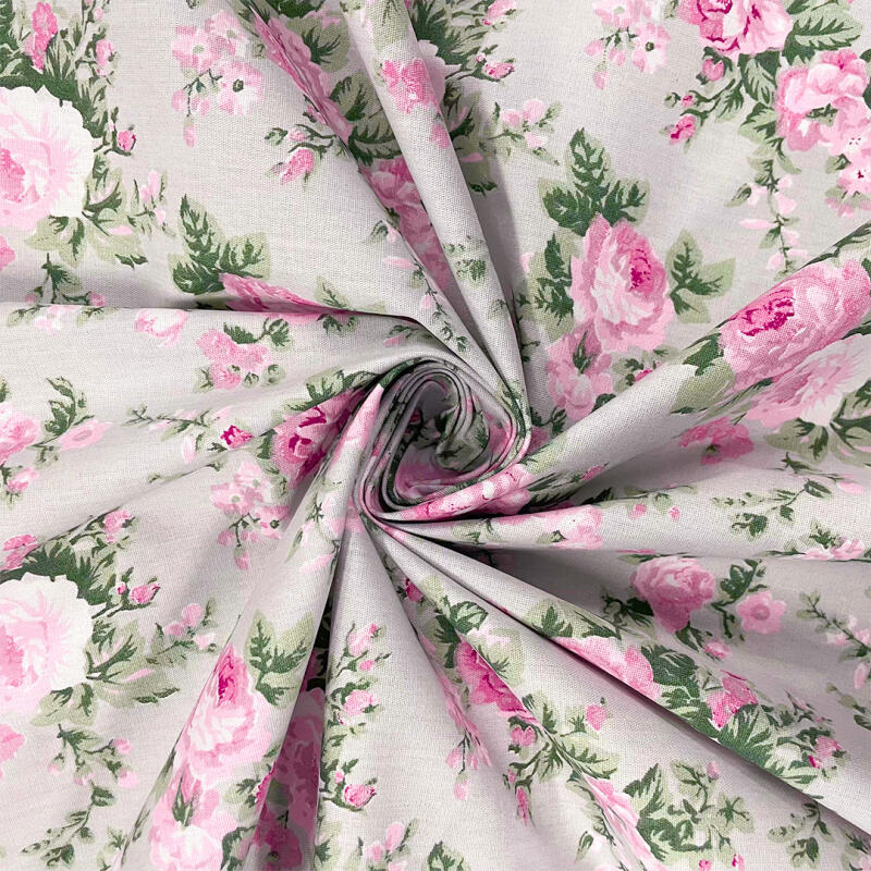 Tricoline Estampada - Rosas Grandes Fundo Cinza - 100% Algodão - 1,50M Largura - Variante 1