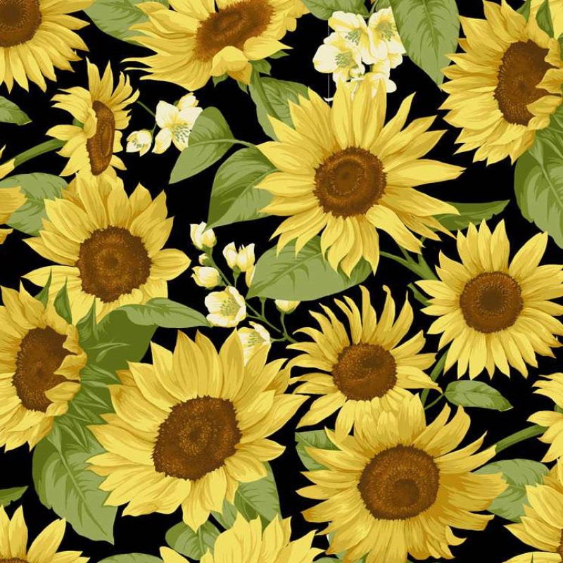 Tricoline Fernando Maluhy - Girassol Fundo Preto - 100% Algodão - C01