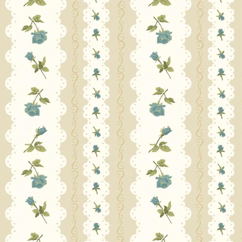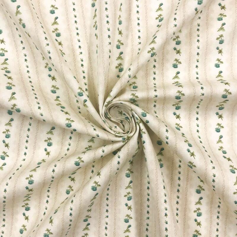Tricoline Fernando Maluhy - Listrado Bege E Azul - 100% Algodão - C03