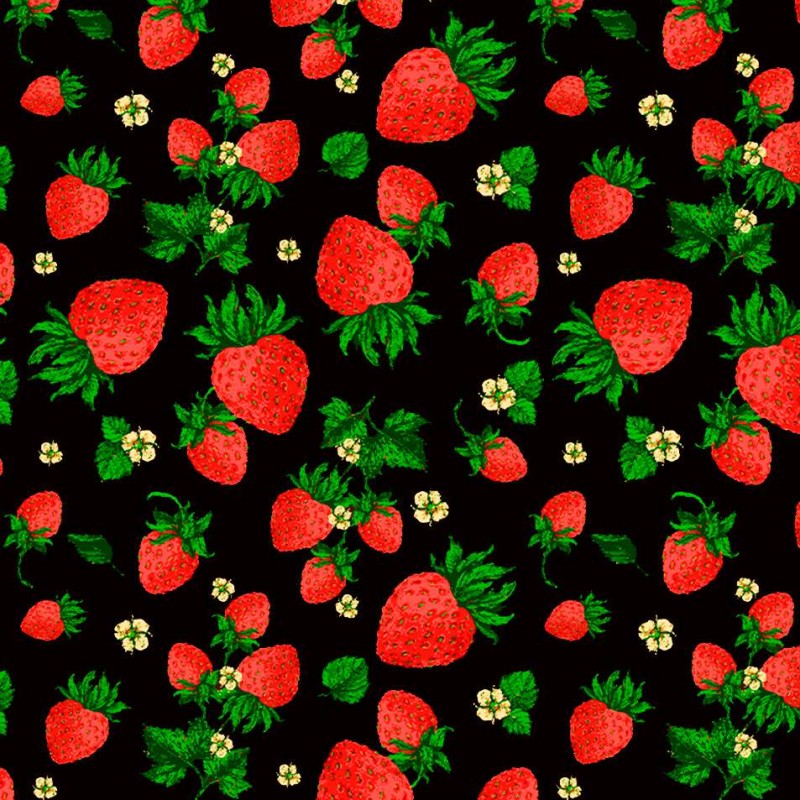 Tricoline Fernando Maluhy - Morangos Fundo Preto - 100% Algodão - C03
