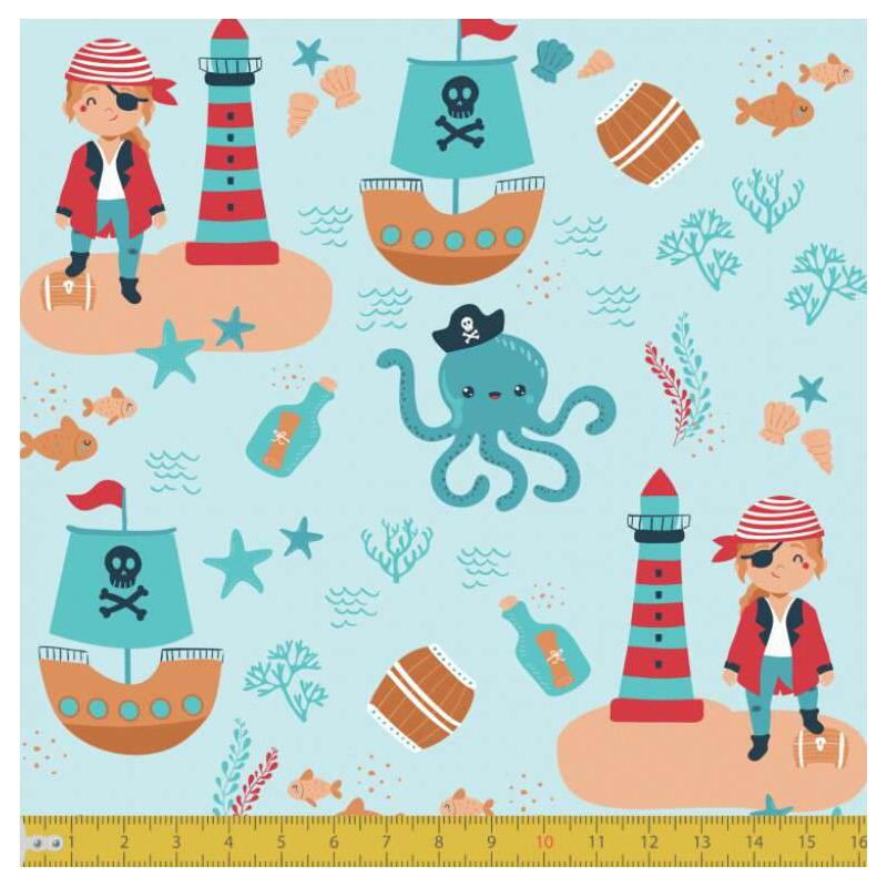 Tecido Tricoline - Pirata Do Mar - 100% Algodão - 1,50 Largura - Variante 1