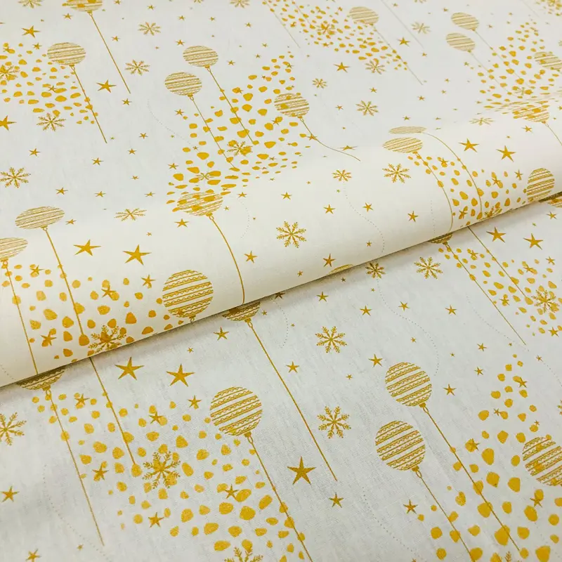 Tricoline Estampada Natal Bolas Douradas 100% Algodão 1,50M Largura - Variante 1