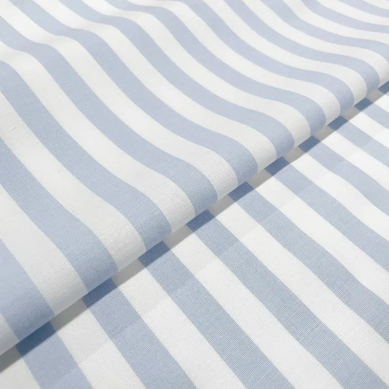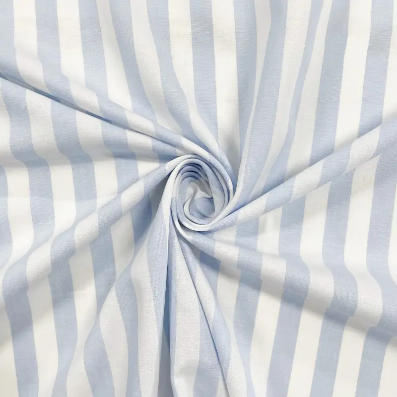 Tricoline Listras Grandes Fio Tinto 100% Algodão - Azul Bebê