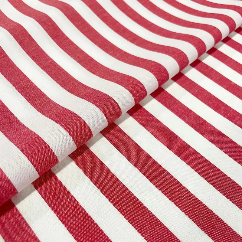 Tricoline Listras Grandes Fio Tinto 100% Algodão - Vermelho