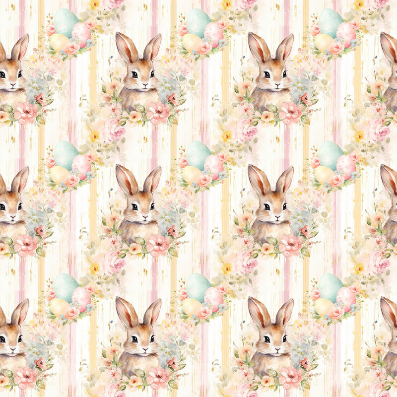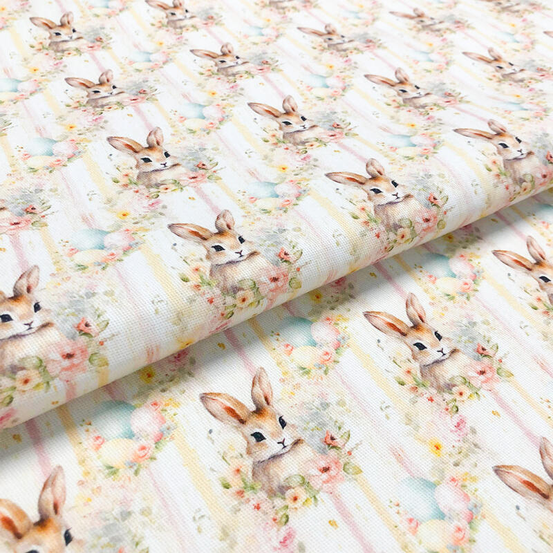 Sarja Impermeável Exclusiva Páscoa Fundo Listras Aquareladas 100% Algodão 1,50M Largura - Variante 1