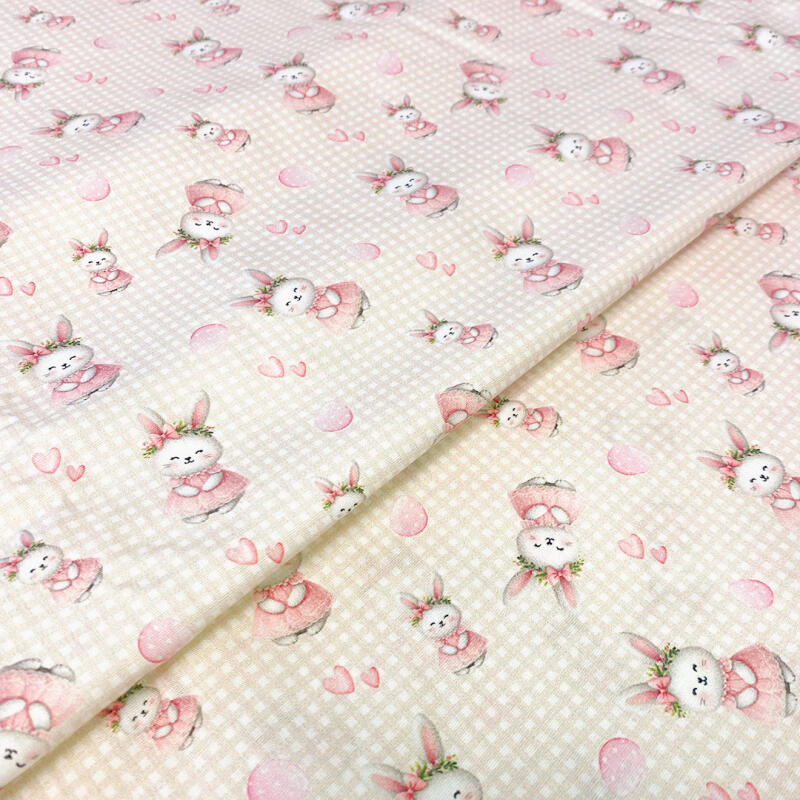 Tricoline Digital Fabricart Páscoa Menina Coelha 100% Algodão 1,50M Largura - Variante 1