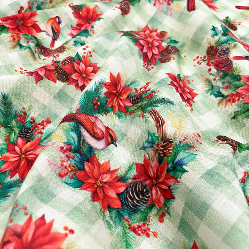 Tricoline Digital Natal Coroa Floral 100% Algodão - Variante 1
