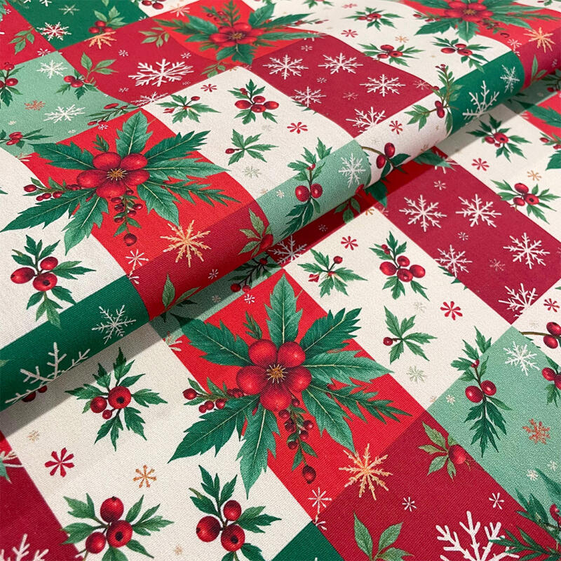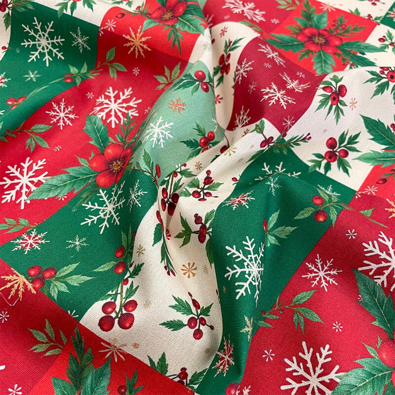 Tricoline Digital Natal Patchwork Natalino 100% Algodão - Variante 1