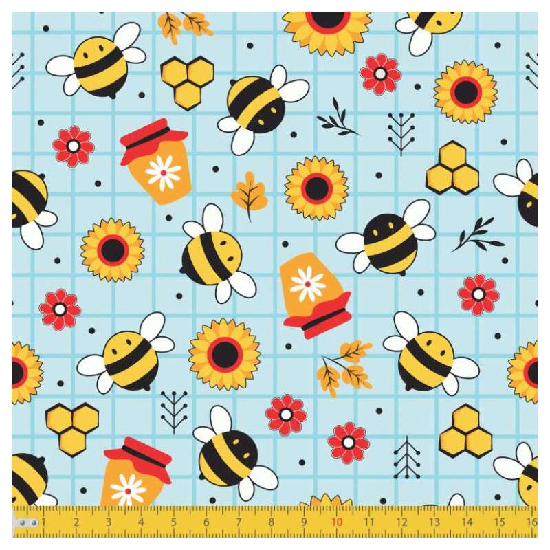 Tecido Tricoline - Abelhinhas Com Girassol - 100% Algodão - 1,50M Largura - Variante 1