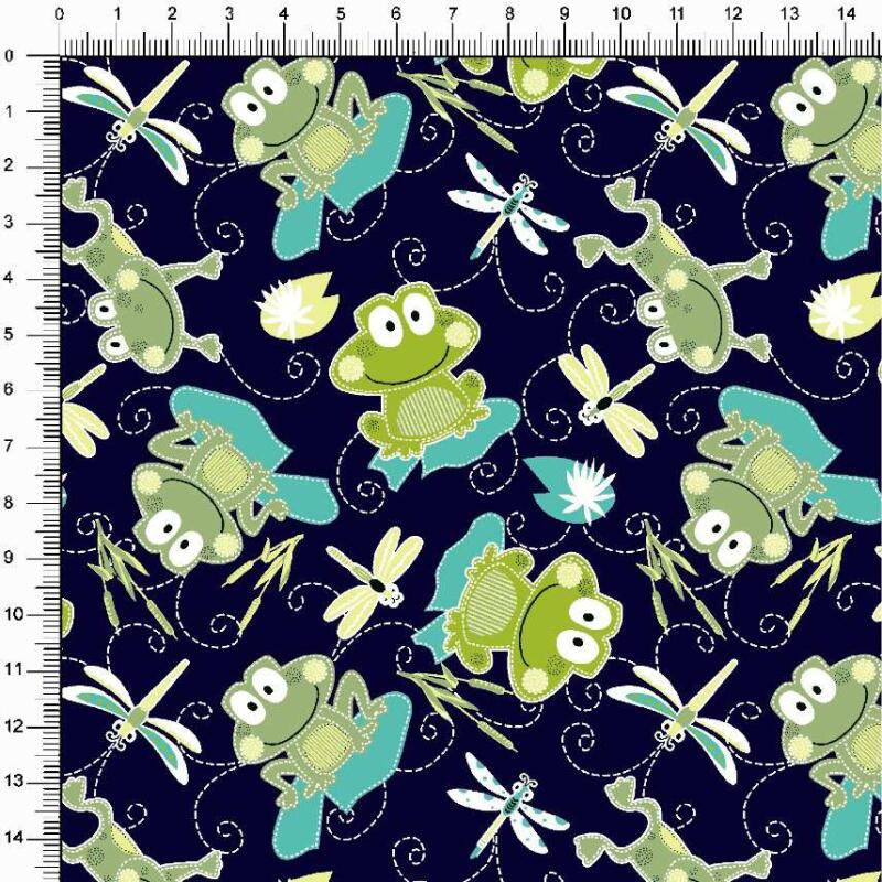 Tecido Tricoline Estampado - Sapo E Libélula - 100% Algodão - 1,50M Largura - Variante 3