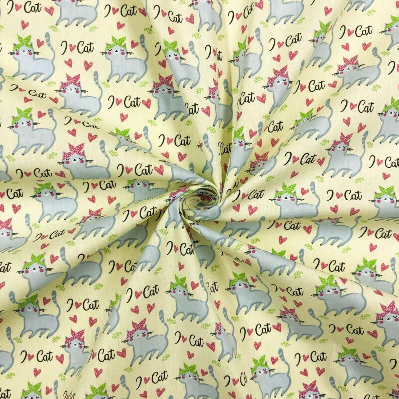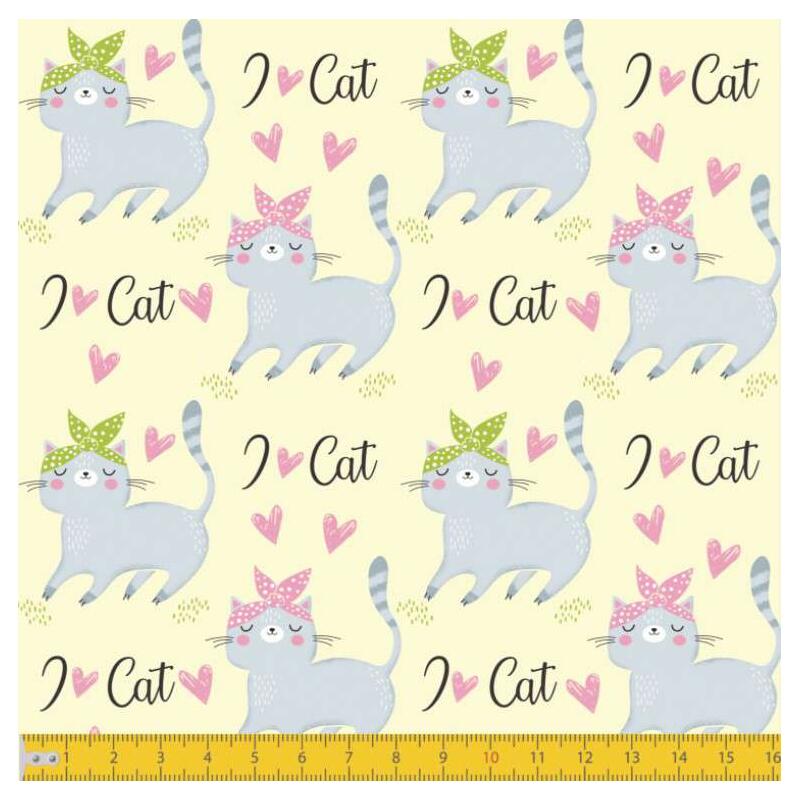 Tecido Tricoline - I Love Cat's - 100% Algodão - 1,50M Largura - Variante 1
