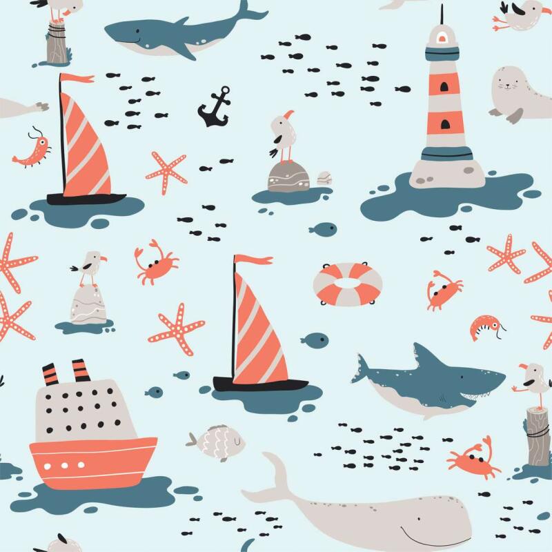 Tecido Tricoline - Mar Divertido - 100% Algodão - 1,50M Largura - Variante 1