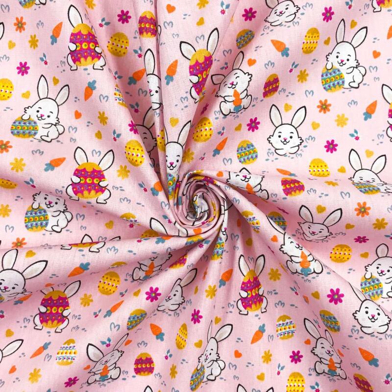 Tecido Tricoline - Páscoa Coelho Com Glitter - 100% Algodão - 1,50M Largura - Variante 2