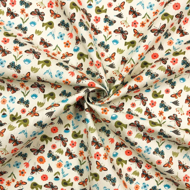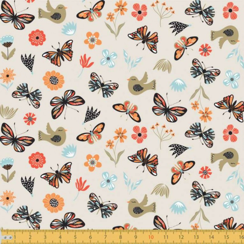 Tecido Tricoline - Pássaros E Borboletas - 100% Algodão - 1,50M Largura - Variante 1