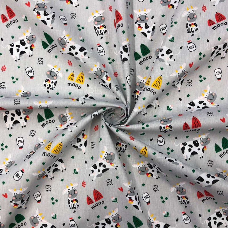 Tecido Tricoline - Vaquinha Milk - 100% Algodão - 1,50M Largura - Variante 1