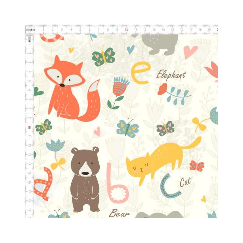 Tricoline Digital - Animais Alfabeto - 100% Algodão - Variante 1
