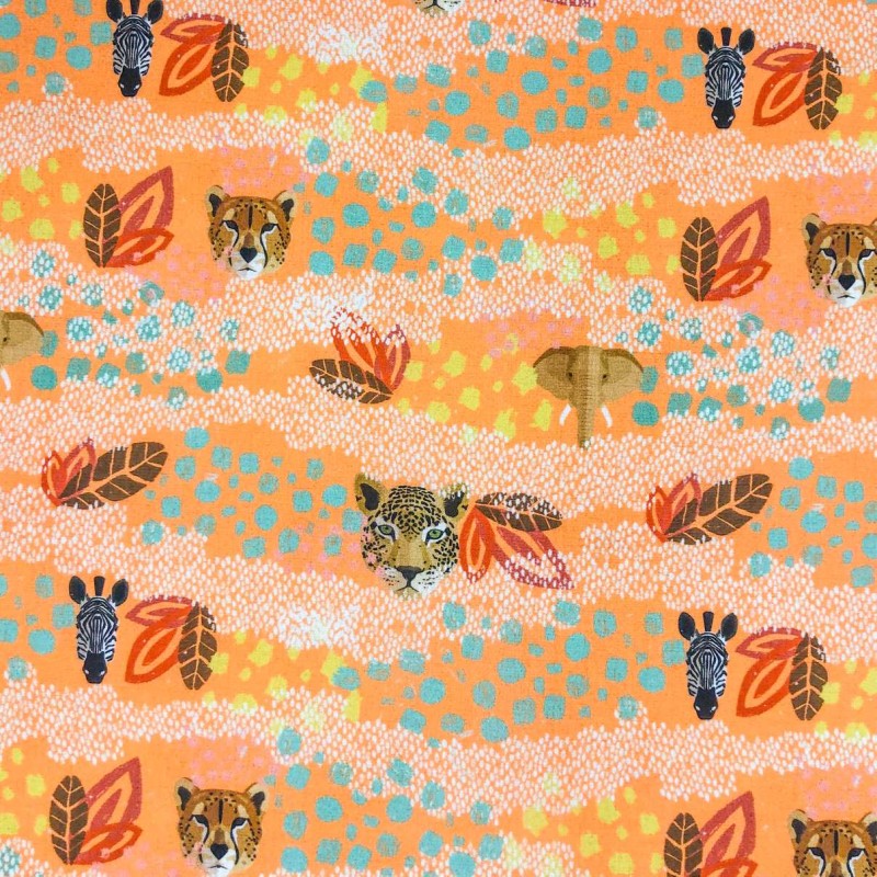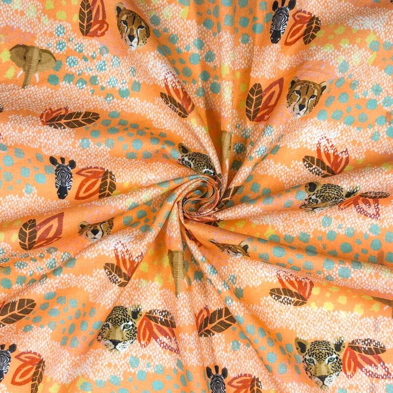 Tricoline Digital - Animais Safari - 100% Algodão - Variante 1