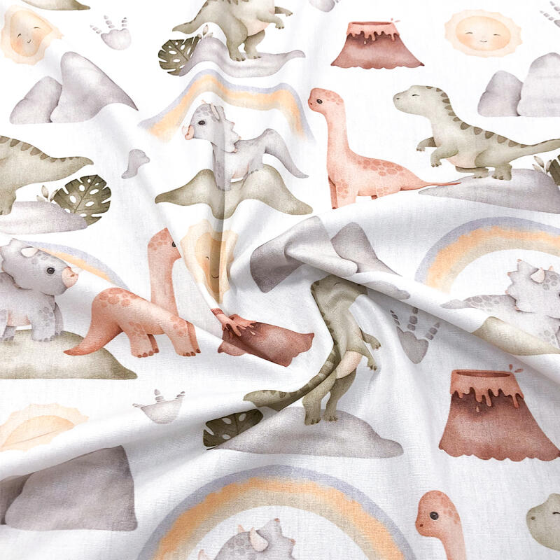 Tricoline Digital Fernando Maluhy Coleção Dinos 100% Algodão - Dinos Coloridos