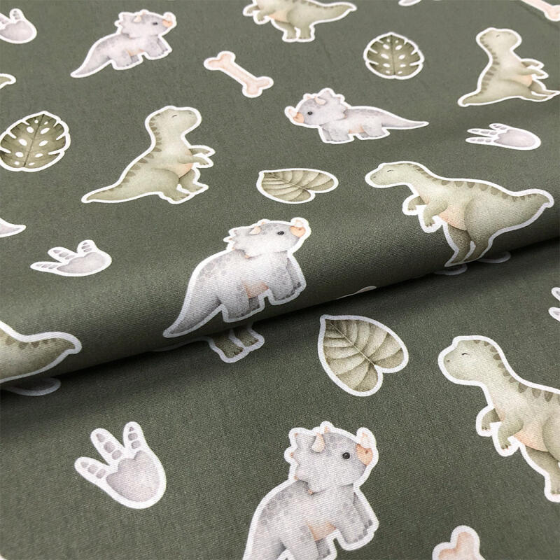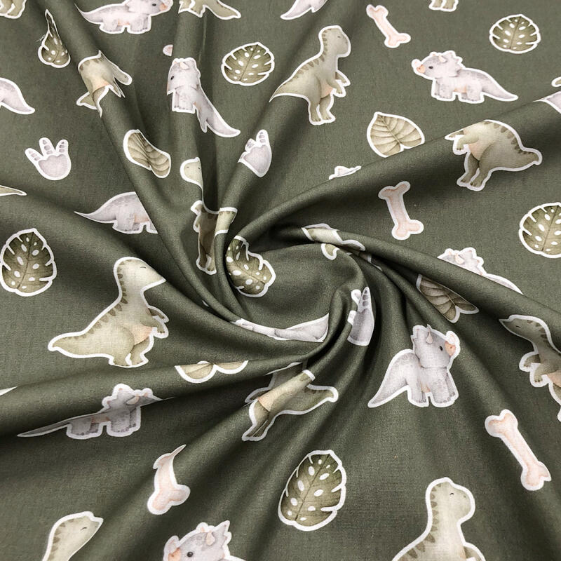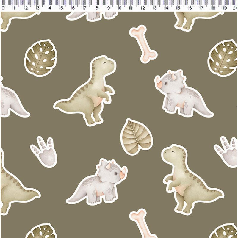 Tricoline Digital Fernando Maluhy Coleção Dinos 100% Algodão - Fundo Verde
