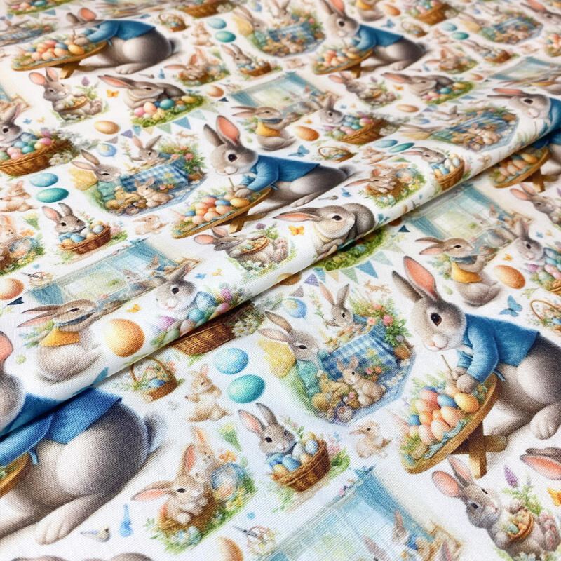 Tricoline Digital Fernando Maluhy Páscoa Coelho Pintando Ovos 100% Algodão 1,50M Largura - C01