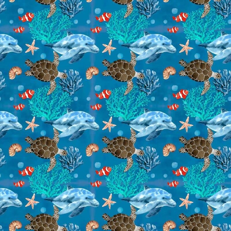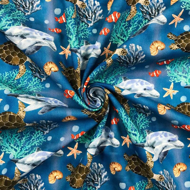 Tricoline Digital - Fundo Do Mar - 100% Algodão - Variante 1