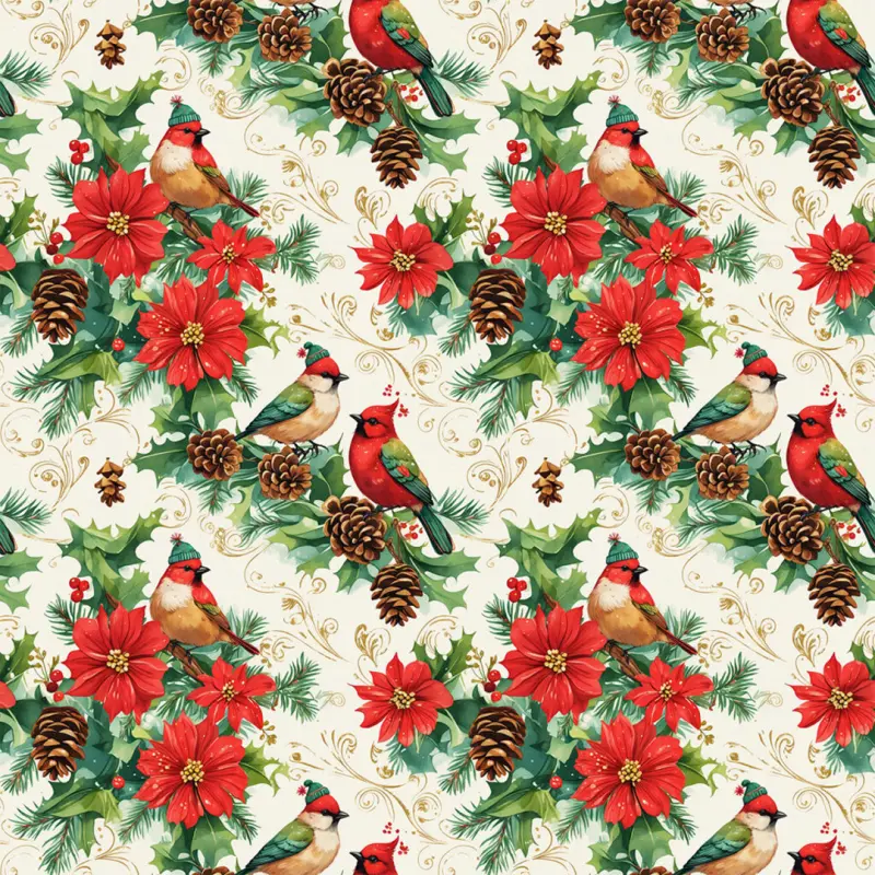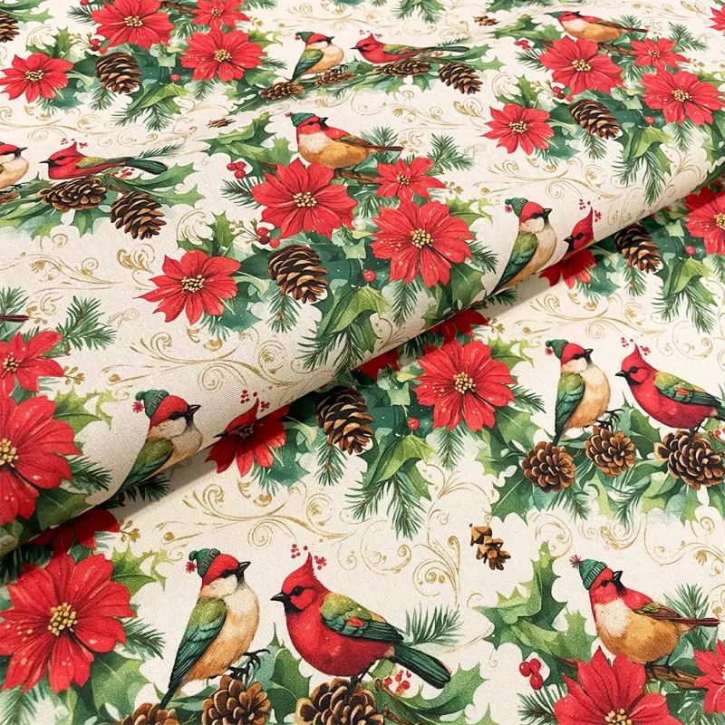 Tricoline Digital Natal Pássaro Cardeal 100% Algodão - Variante 1