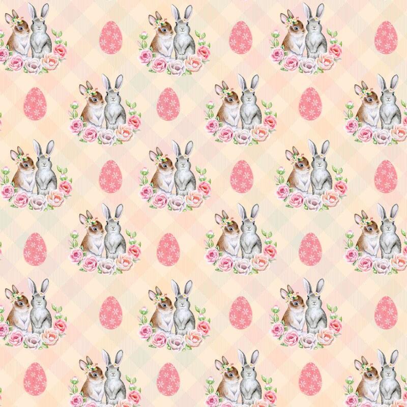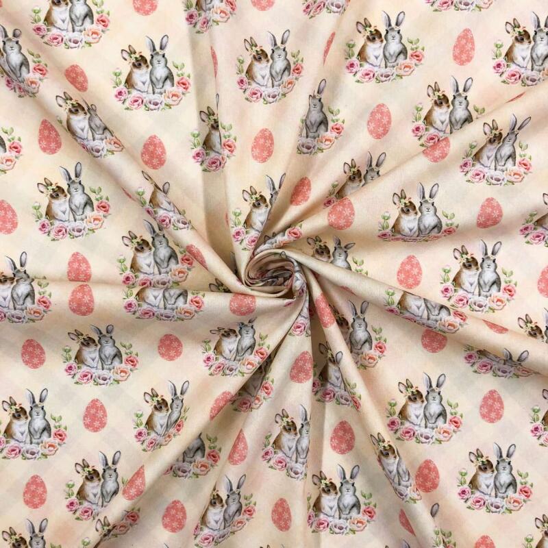 Tricoline Digital - Páscoa Casal Coelhos - 100% Algodão - Variante 1