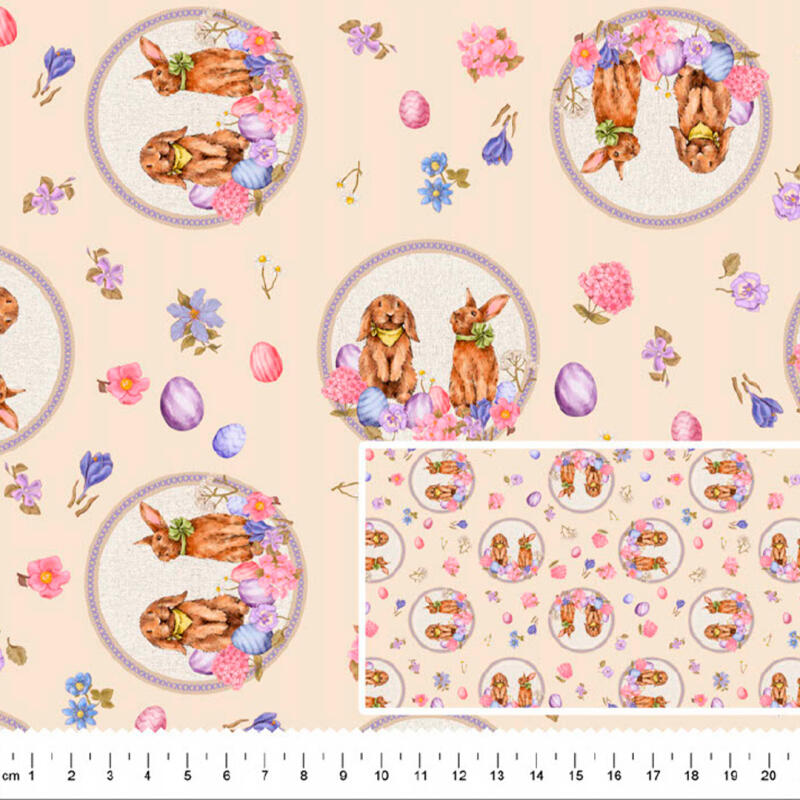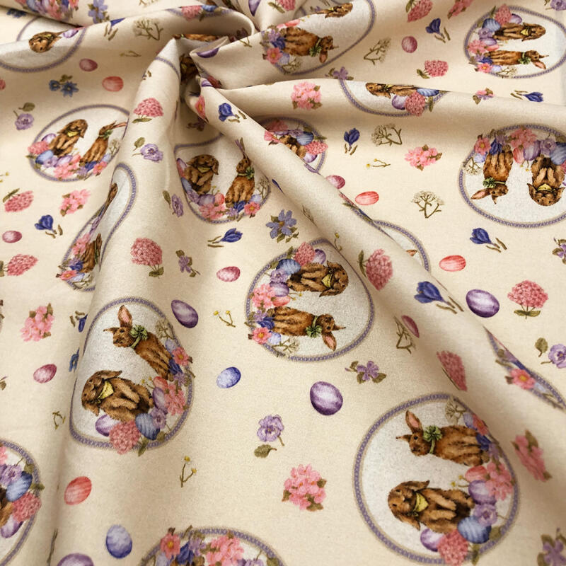 Tricoline Digital Páscoa Casal De Coelhos 100% Algodão 1,50M Largura - Variante 1