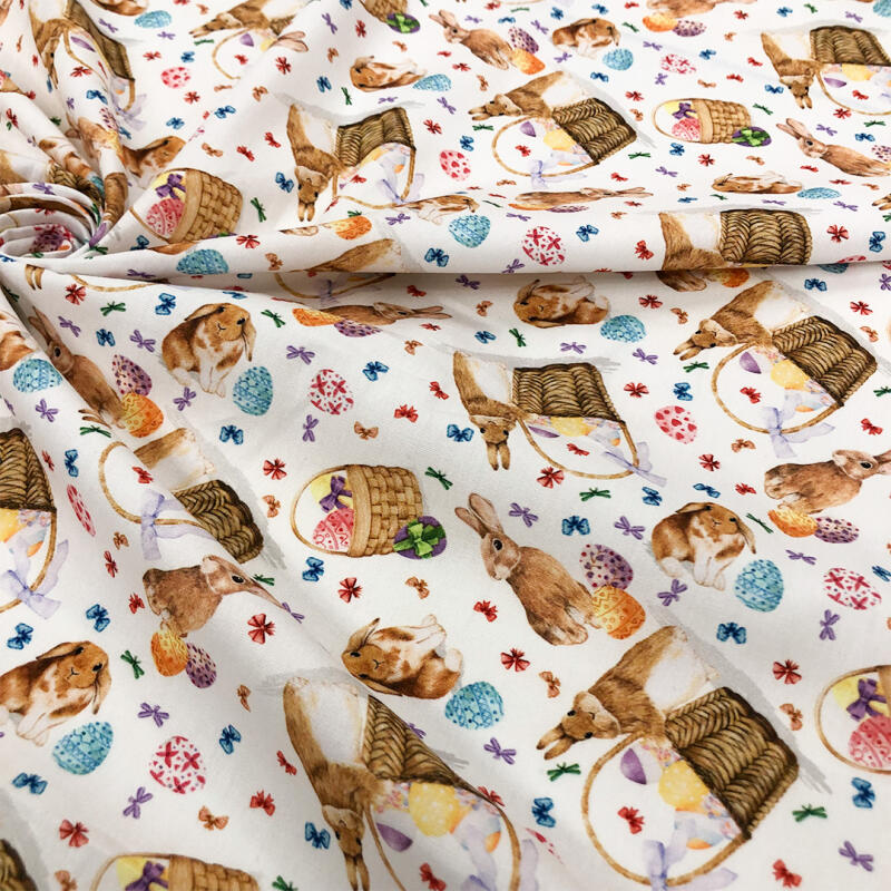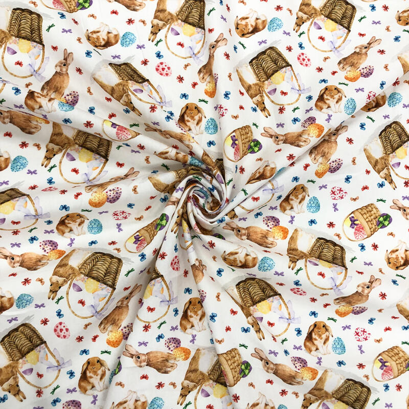 Tricoline Digital Páscoa Cesta De Ovos 100% Algodão 1,50M Largura - Variante 1