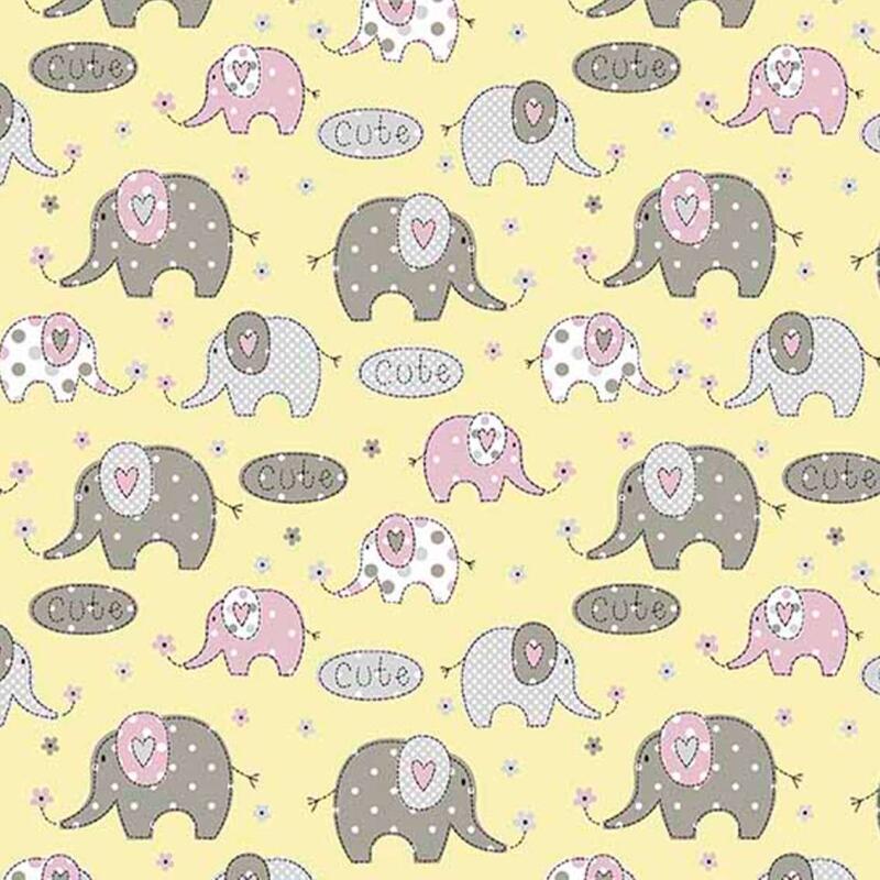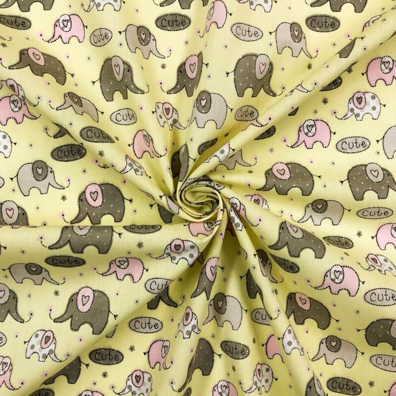 Tricoline Estampada - Elefante Cute Amarelo- 100% Algodão - 1,50M Largura - Variante 1