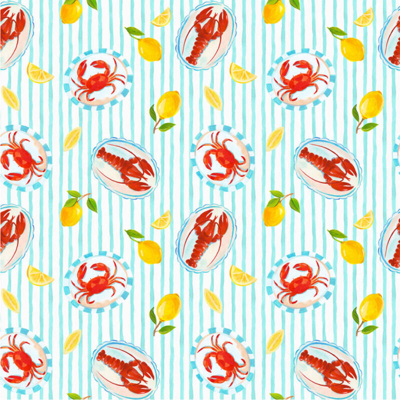 Tricoline Estampada Lagosta E Siri 100% Algodão 1,50M Largura - Variante 1