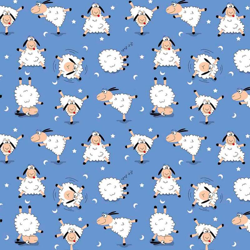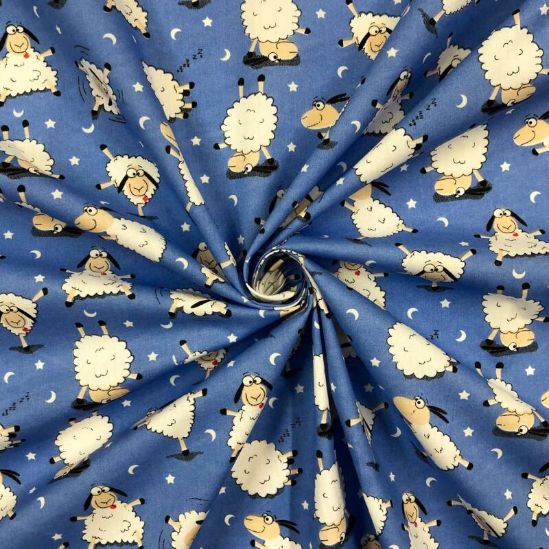 Tricoline Estampada - Ovelhinha Azul - 100% Algodão - 1,50M Largura - Variante 1