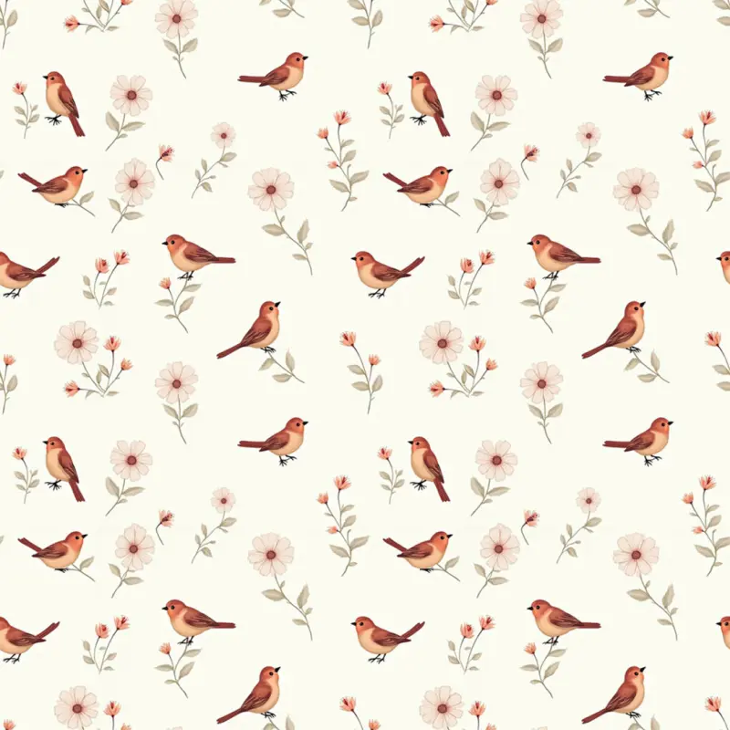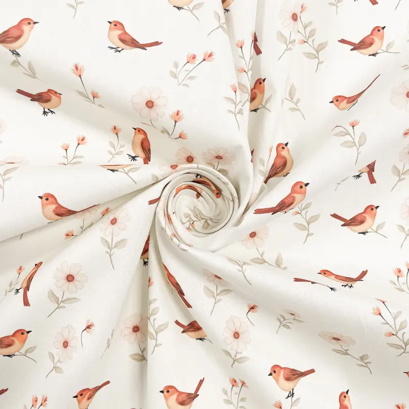 Tricoline Estampada Passarinhos Fundo Creme 100% Algodão 1,50M Largura - Variante 1