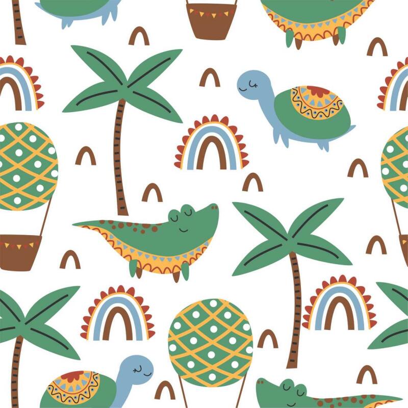 Tricoline Estampada Tartaruga E Jacaré 100% Algodão 1,50M Largura - Variante 1