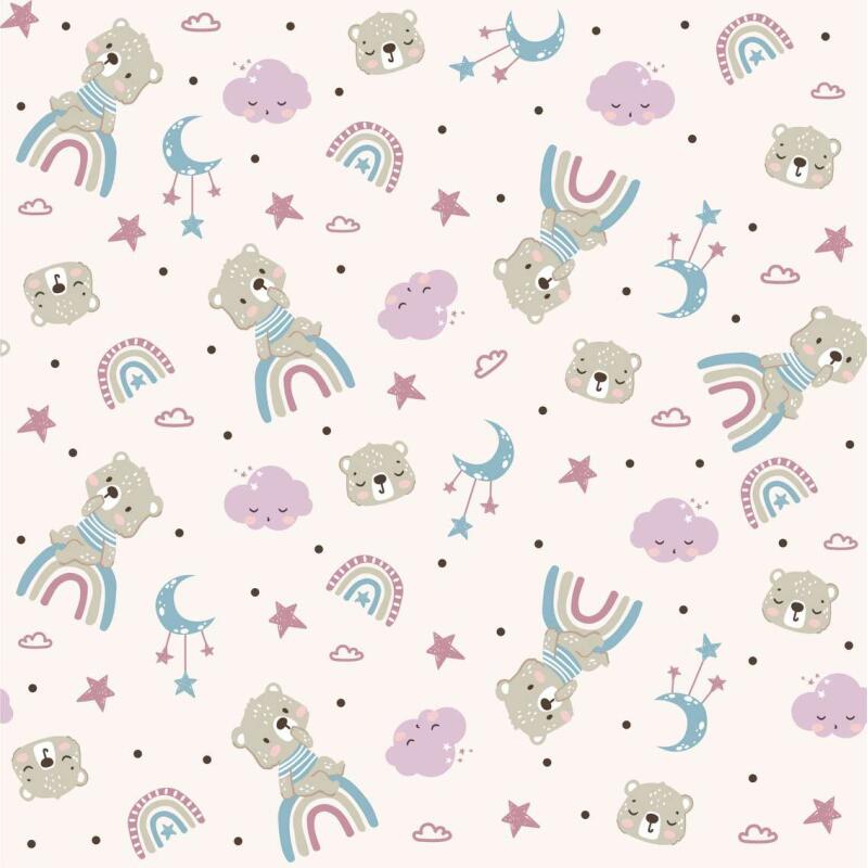 Tricoline Estampada Ursinhos Arco Íris 100% Algodão 1,50M Largura - Variante 1
