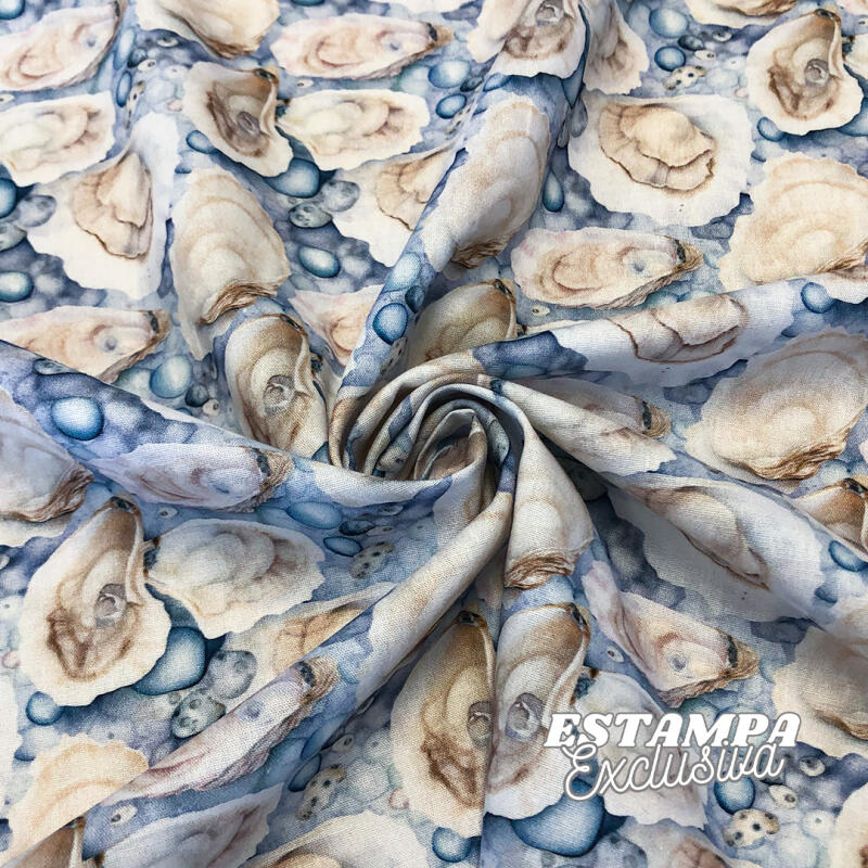 Tricoline Exclusiva Coleção Oceano De Requinte 100% Algodão 1,50M Largura - Ostras