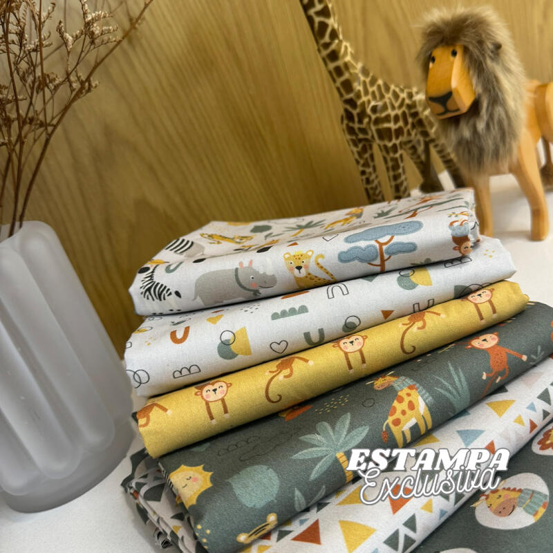 Tricoline Exclusiva Coleção Safari Universo Encantado 100% Algodão 1,50M Largura - Compose Fundo Branco
